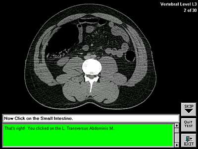 Each test consists of thirty structures pulled randomly from the entire pool of structures for that particular body region and include both the body and clinical images. Students are given one attempt to correctly identify each structure. Immediate feedback tells them whether they are right or wrong. Students may skip a question if they prefer, and they may quit the test at anytime.