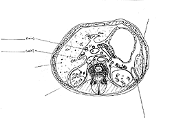 and students found the "porcupine" approach to labeling images in most cross-sectional atlases awkward and overwhelming. The extent of a structure often was not apparent, particularly on CTs and MRIs. Students also found it difficult to orient to cross-sectional images.