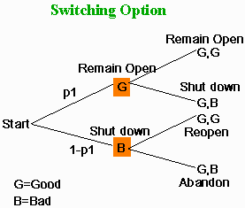 A project whose operation can be dynamically turned on and off (or switched to two distinct locations) is worth more than the same project without the flexibility to switch.