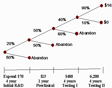 A drug company needed to value a new drug research and development project. There were four development phases:
