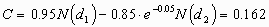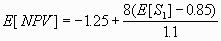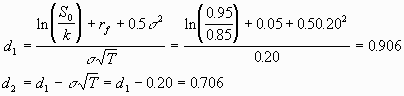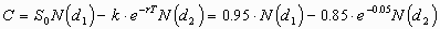 Now note that your company has the option to abandon the project after the development phase. In this case, the mining phase will only proceed if S1 > 0.85. This is a simple call option on copper with strike price 85 cents and one year to maturity, and can be valued using Black-Scholes: