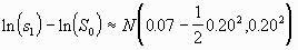 1 - pr[ln[S1] < -0.1625]
