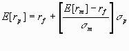 Note, however, that for a portfolio to be on this line, it must be perfectly positively correlated with M (i.e., rho(p,m) = 1). Intuitively, this is because these portfolios are composed of the riskless asset and portfolio M, so the only source of variation in the portfolios returns is variation in the returns of portfolio M. Mathematically we can see that this is the case by definition.